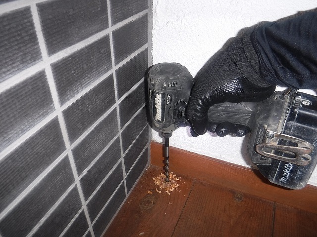 テナントの床に張ってある木材が食害されており、夜間に大量の羽アリが出たとの事でした。