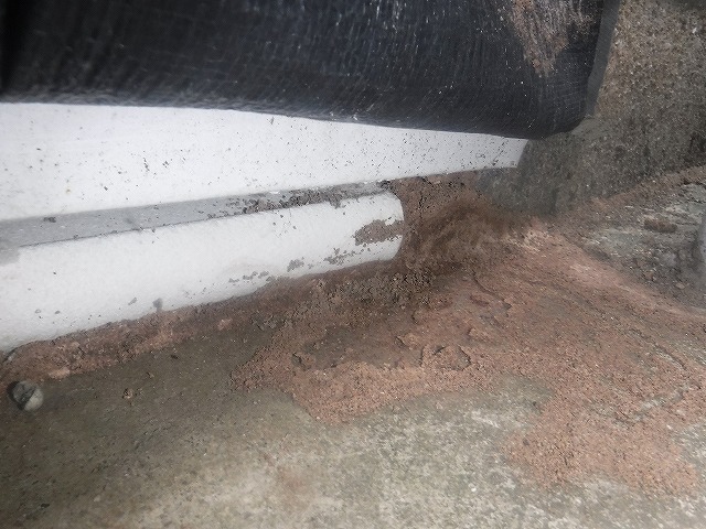 こちらのお客様宅は床下に入るための高さがなく、外部からの侵入のためこのような工法で駆除を行っております。