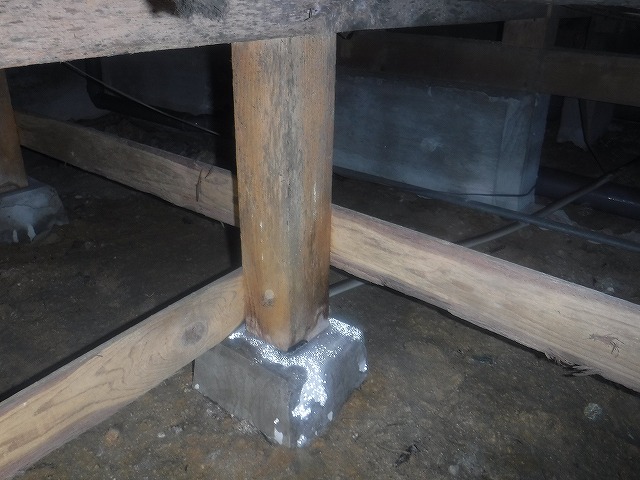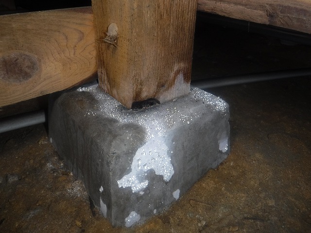 床下の湿度が高く、束石に水滴が付いています。