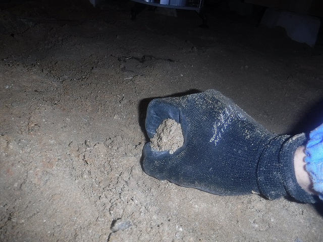 土壌の含水量(水分量)が多いため、土を握ると団子状になります。