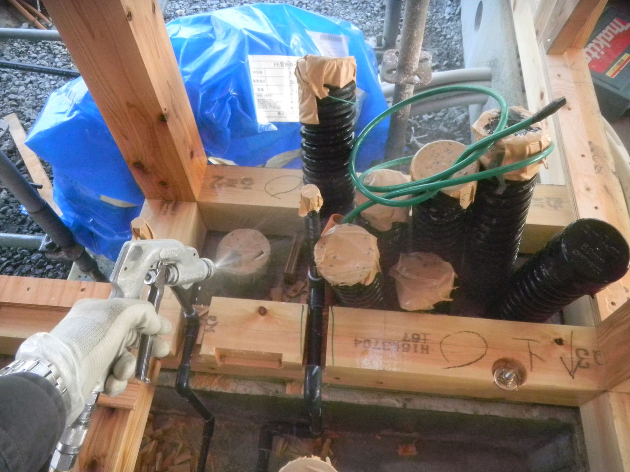 建築物へのシロアリの侵入を防ぎ、建築物全体をシロアリの被害からまもる為の重要な工程です。