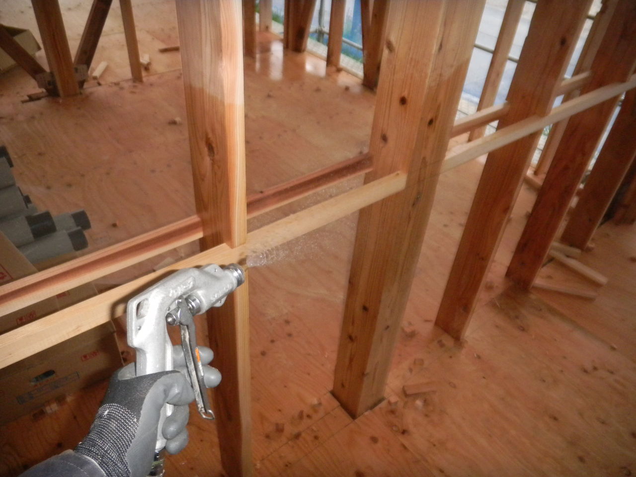 残りの間柱・筋交いなど防蟻・防腐処理を行っています。
