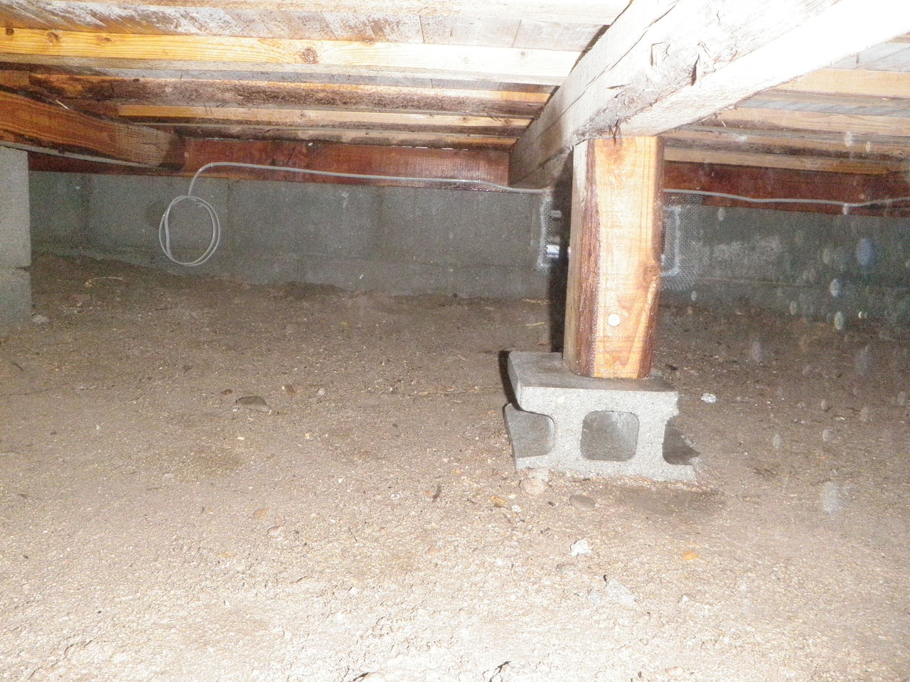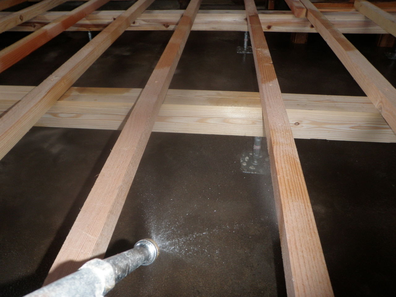 このシロアリは水を運ぶ能力が無いため湿気を好み、湿気のある場所や水が取れる環境に生息するシロアリです。ですので今回は、シロアリ駆除と湿気対策として換気扇を設置し床の下の改善を行います。