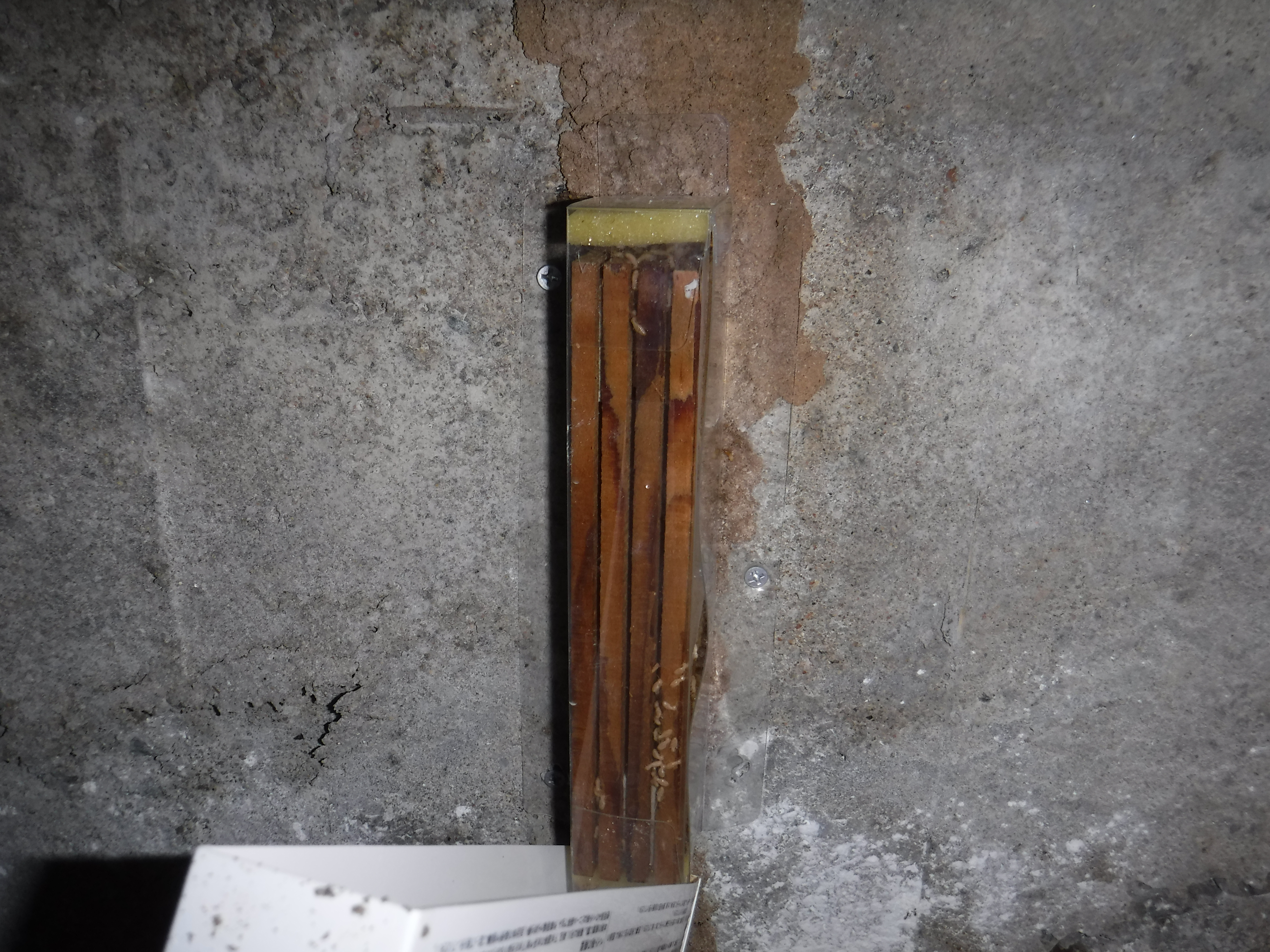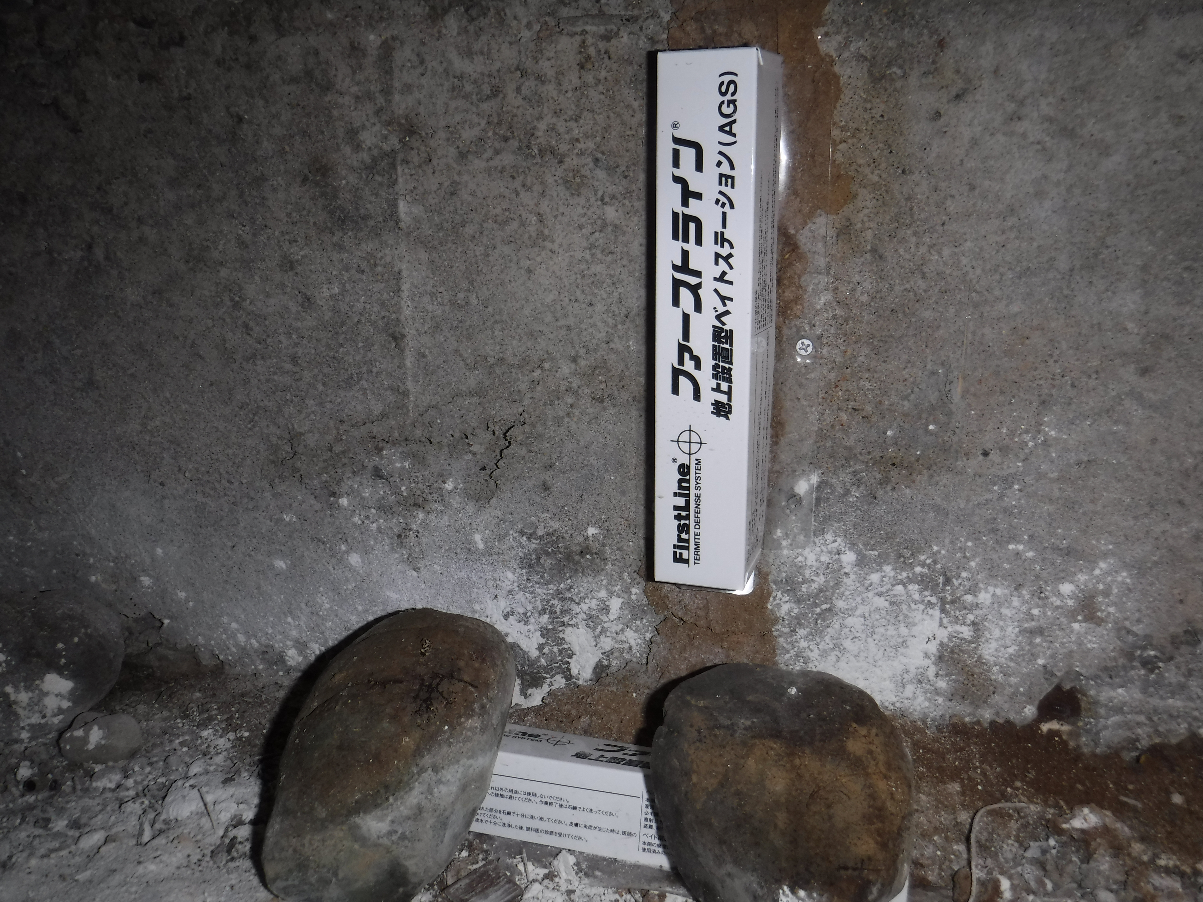 蟻道(ギドウ)と呼ばれる白蟻の通り道にベイト剤を設置しています。