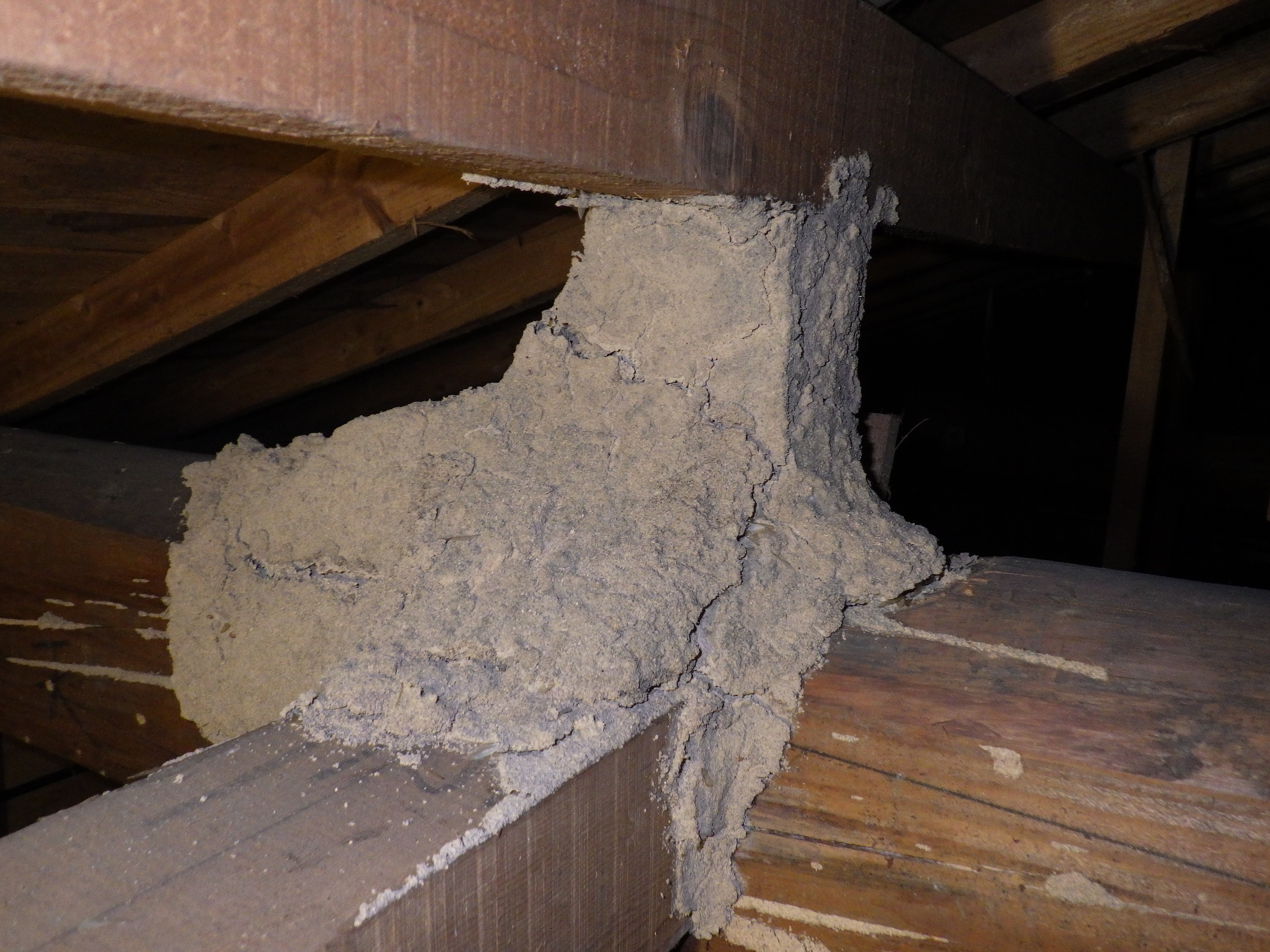 こちらのお客様宅ではイエシロアリという白蟻が家の中に生息していて、地中の本巣との中継地点として天井裏に分巣と呼ばれる巣を作っていたのですね。