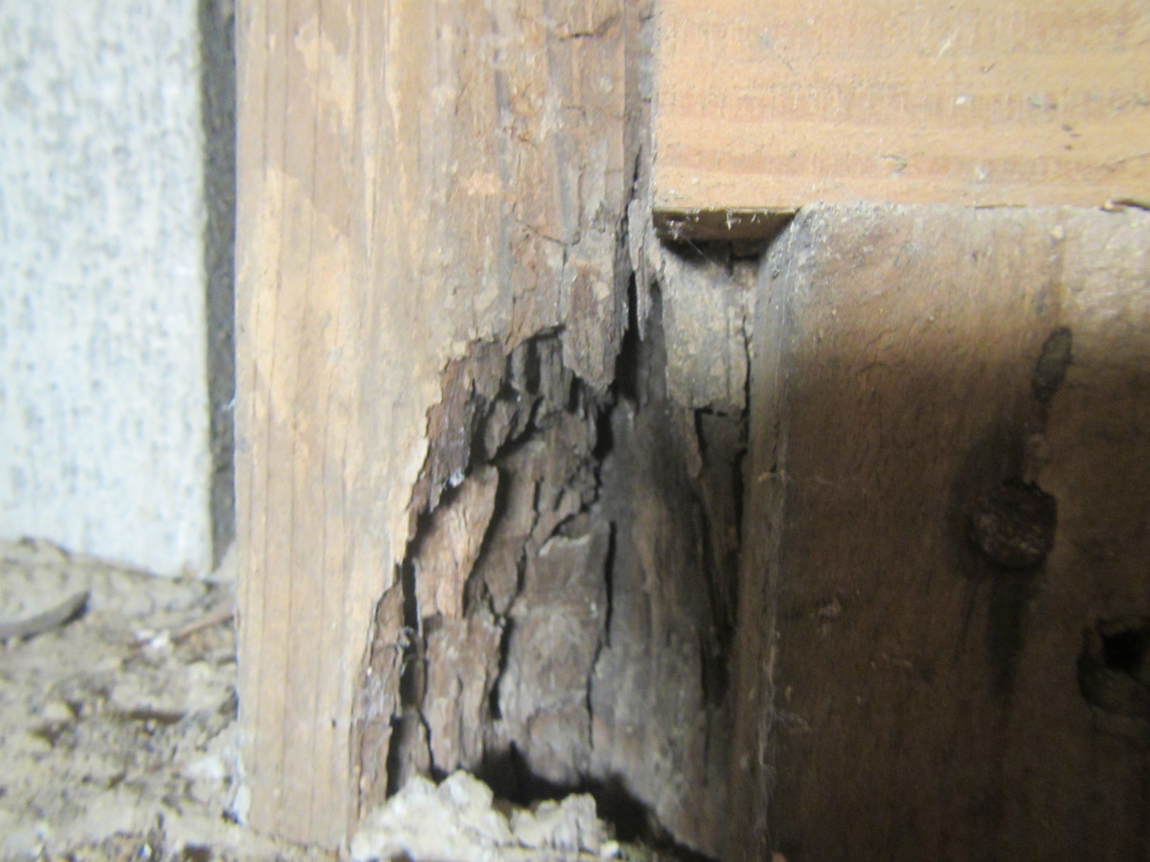 近年では、施工時間の短縮や経費削減の為に木材穿孔注入後に木栓を行わないシロアリ業者も増えていますが、カビの胞子が木口面に付着して発育できる環境にあると著しく木材の腐朽が進行することがあります。シロアリは大丈夫だけど白あり工事を行った結果、木材の腐朽を進行させてしまっては本末転倒といえます。お客様がシロアリ工事をご依頼されているのは、「長く家に住む」為です。従って、シロアリ業者は長く家に住めるための防蟻処理を実施しなければなりません。