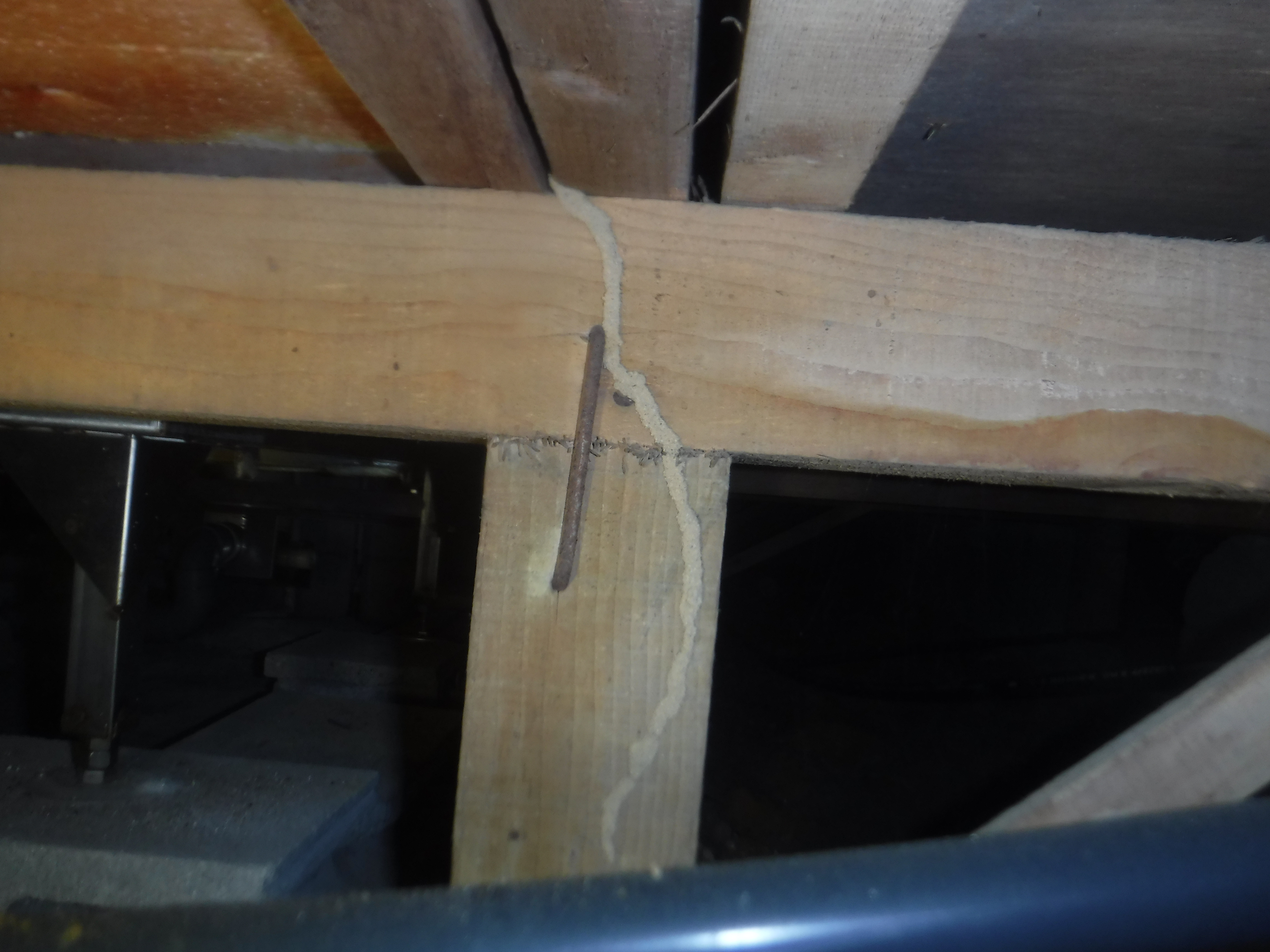 ヤマトシロアリはイエシロアリと違い、塊状の巣は作らず、加害箇所が巣を兼ねています。