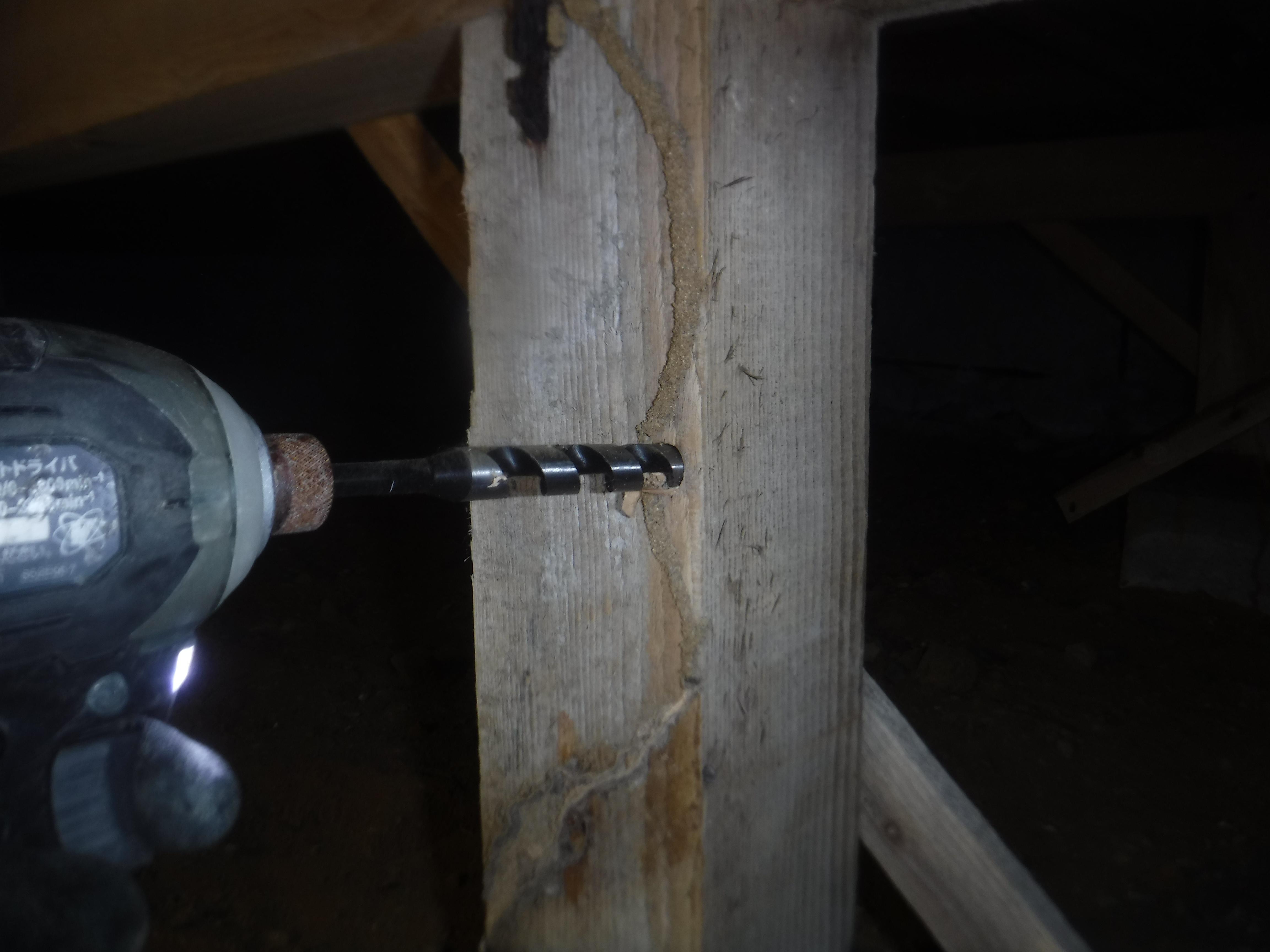 蟻道がしっかりと確認できましたので、木部処理工事をいたしました。