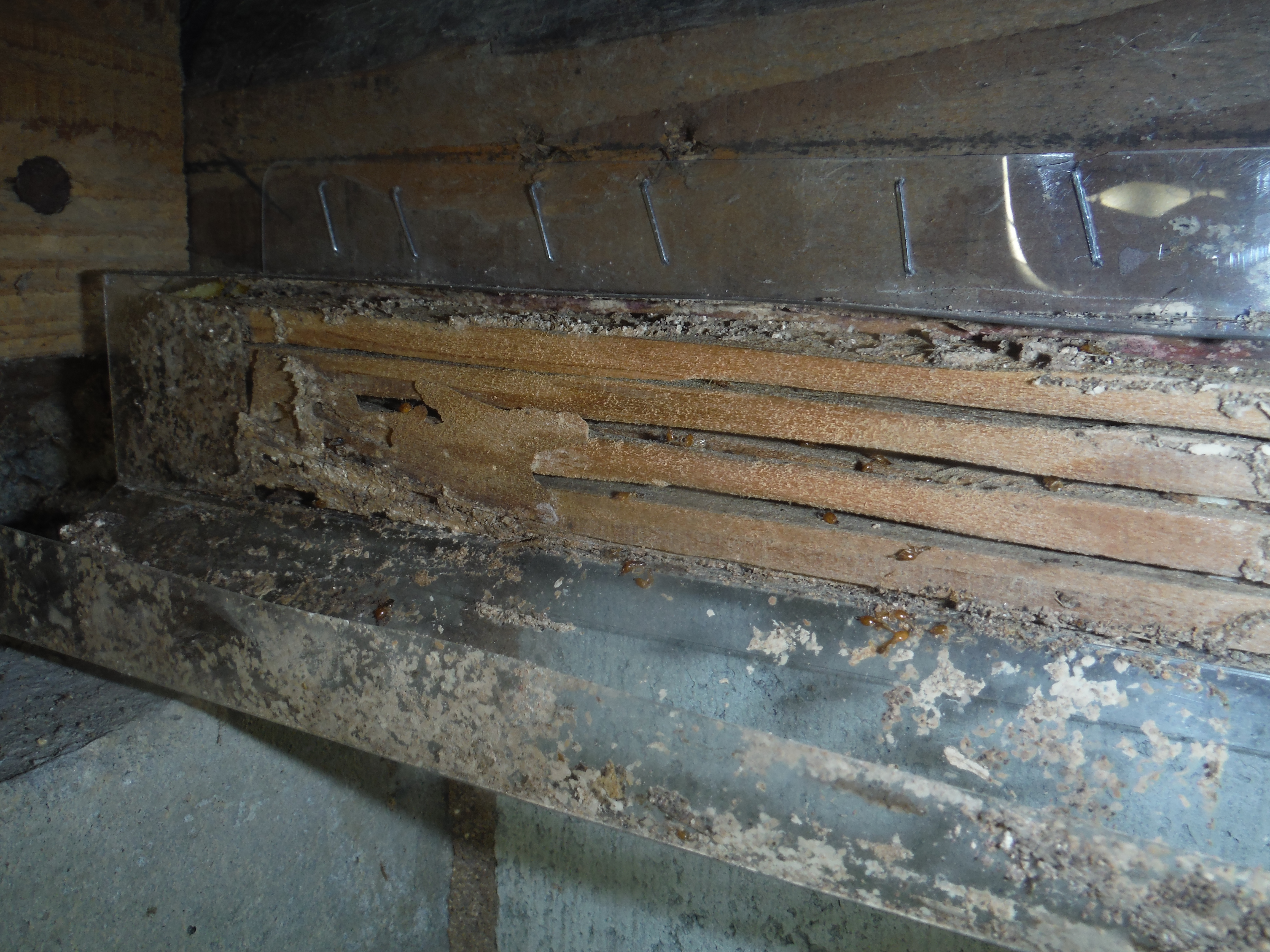 何度か確認に来ましたが、6月1日に設置をして8月31日には、このように兵蟻の死骸を確認しました。S様のアパートの駆除完了までの期間は3カ月でした。