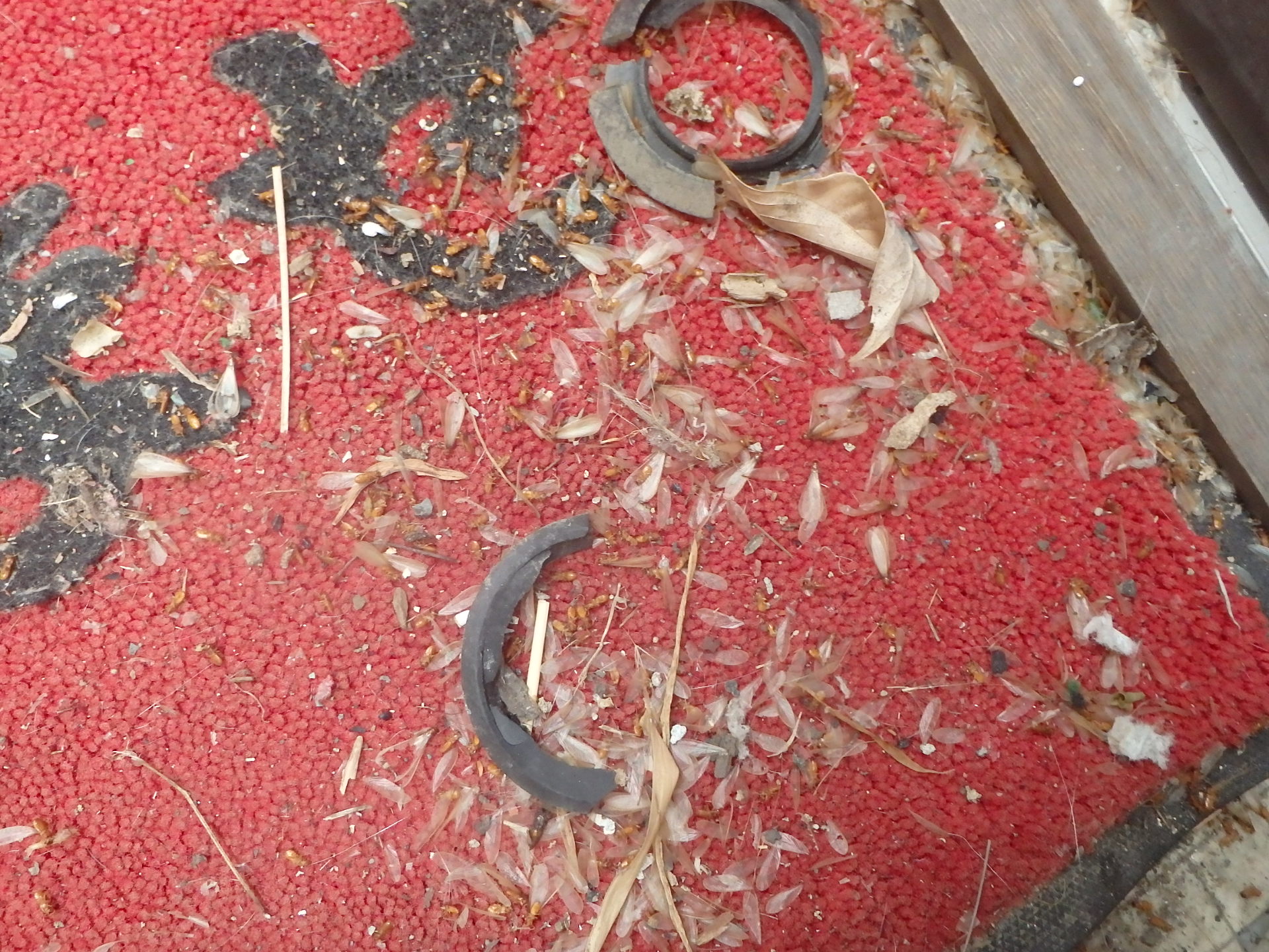 1階の店舗には昨晩羽アリが落とした羽や死骸が散乱したままです。
