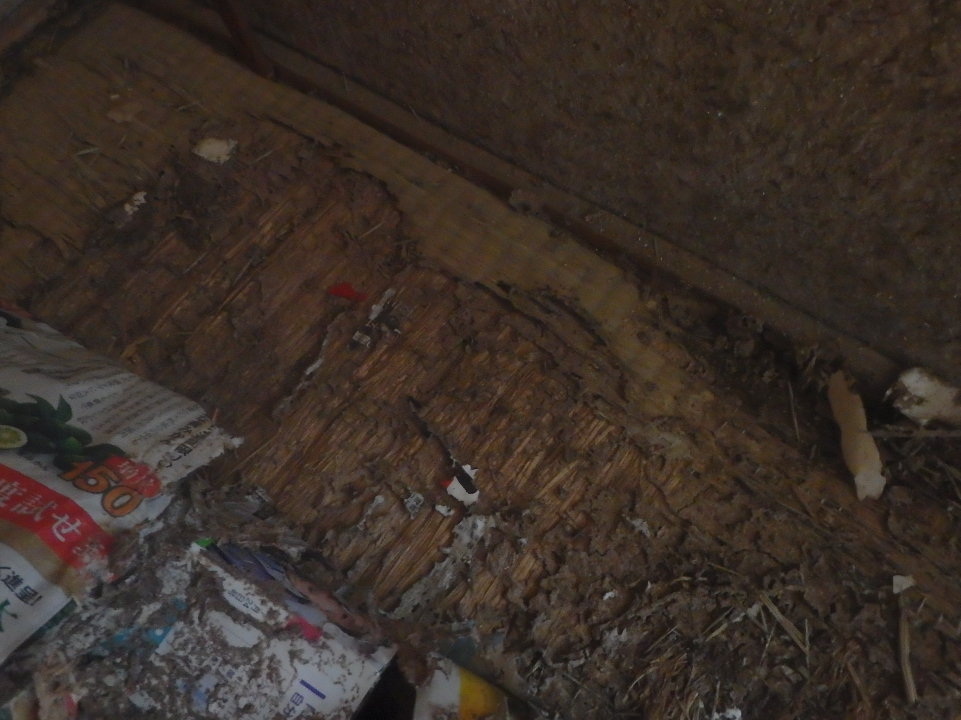 2階のアパートの入居者様に許可を得て、部屋の中にいれて頂くと、このように畳もシロアリに食われています。