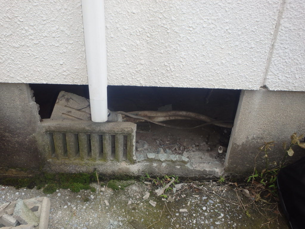 シロアリの侵入経路を確認するために床下調査を行います。