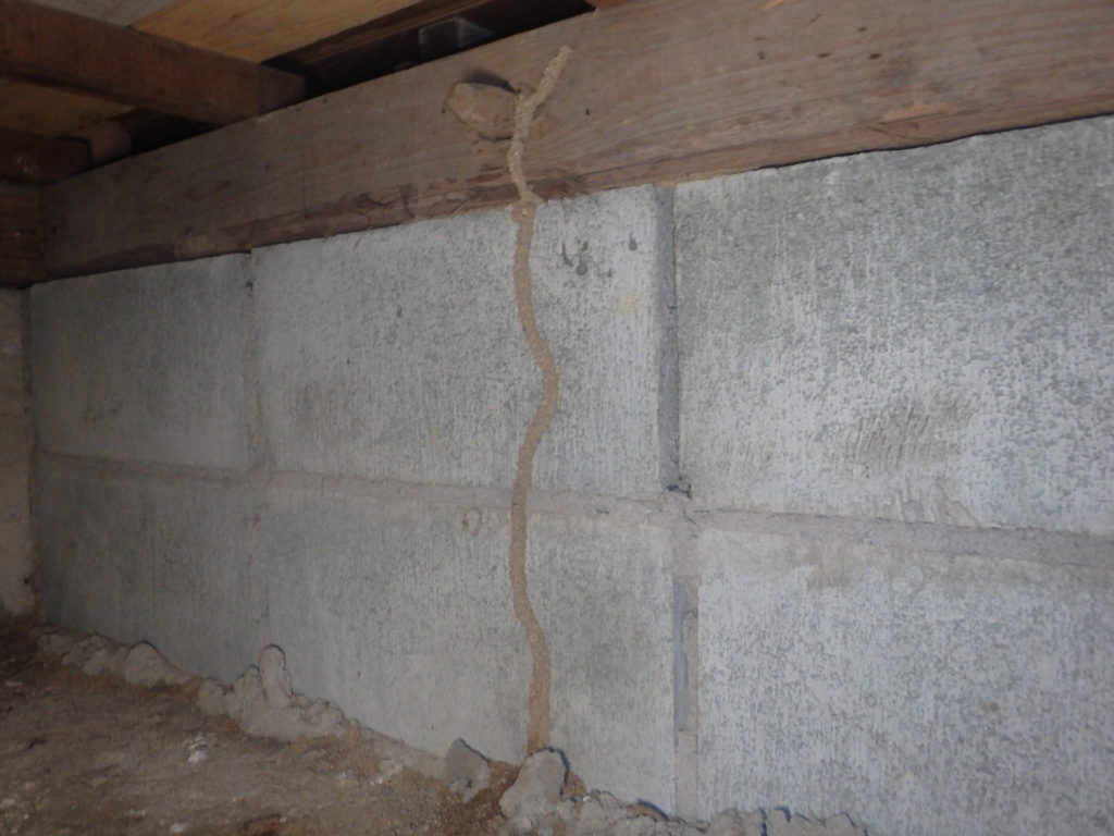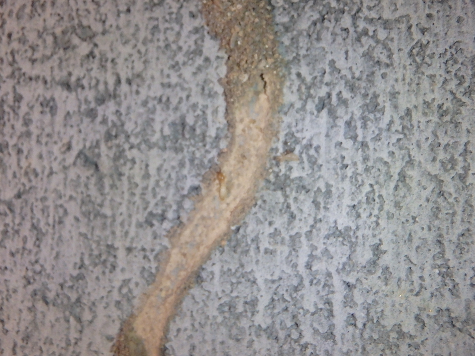 床下に入ると早速、白蟻の通り道を確認しました。