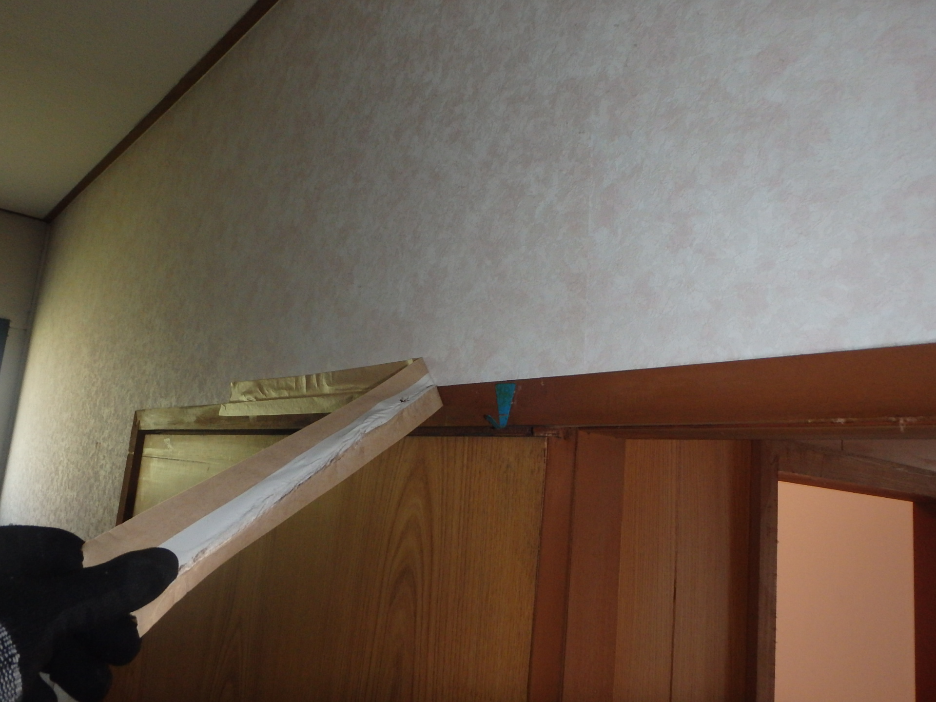 壁から大量に羽蟻が発生をしてガムテープで群飛孔(羽蟻が飛び出す穴)を塞がれていました。
